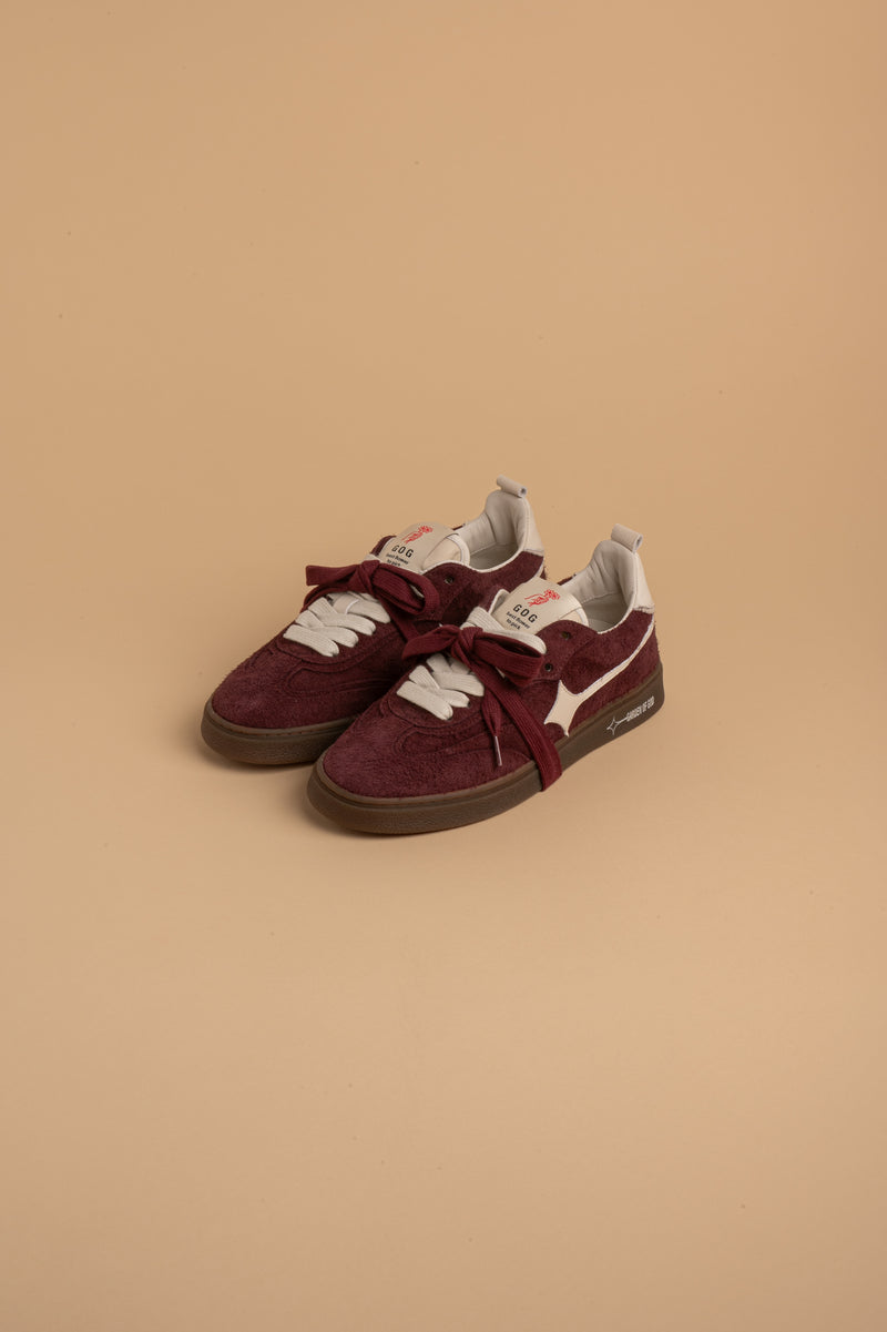 La Iconica EARTH con camoscio peloso, logo e dettagli in pelle bianchi, linguetta soft in nylon con la caratteristica etichetta di Garden of God dal sapore retro.