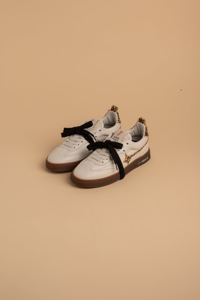 La Iconica EARTH con pelle di vitello, logo e dettagli in pelle animalier, linguetta soft in nylon con la caratteristica etichetta di Garden of God dal sapore retro.