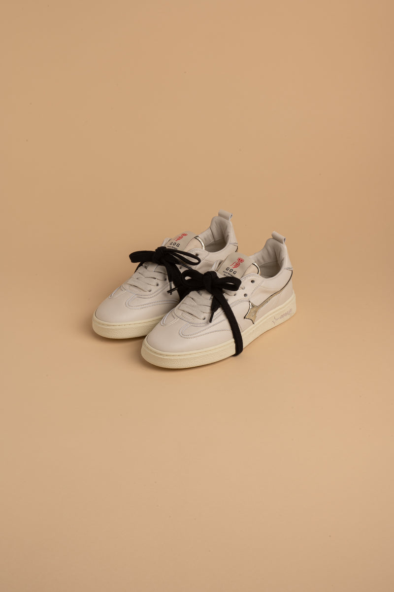La Iconica EARTH con pelle di vitello, logo e dettagli in pelle platinum, linguetta soft in nylon con la caratteristica etichetta di Garden of God dal sapore retro.